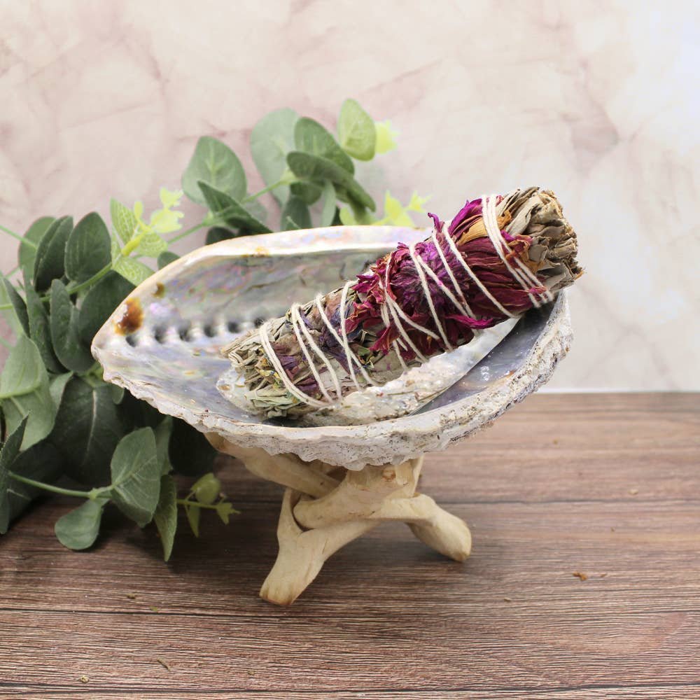 Reinig je huis met de kracht van witte salie en de zachtheid van lila bloemen. Deze smudge-stick is geschikt voor reinigingsrituelen en het verdrijven van negatieve energie. Het bosje salie en bloemen verheldert en scherpt je geest. Het is een geschikte smudge-stick om je dag mee te beginnen of om je nieuwe woning mee in te wijden. De Native Americans zijn de bekendste mensen die het gebruik van smudging hebben verspreid. Betekenis van smudging: Smudging wordt al lange tijd door inheemse volken toegepast. Waarschijnlijk deden grotbewoners dit al duizenden jaren geleden. Smudging betekent ‘energetische reiniging’ door het verbranden van bepaalde kruiden. De Indianen noemden dit het ‘verjagen van kwade geesten’. Tegenwoordig wordt het verjagen van kwade geesten ook opgevat als het verdrijven van negatieve energie. Witte salie branden. Een smudging-ceremonie met witte salie wordt doorgaans uitgevoerd voorafgaand aan een ander ritueel. Zo doen veel mensen aan smudging voordat ze gaan mediteren.